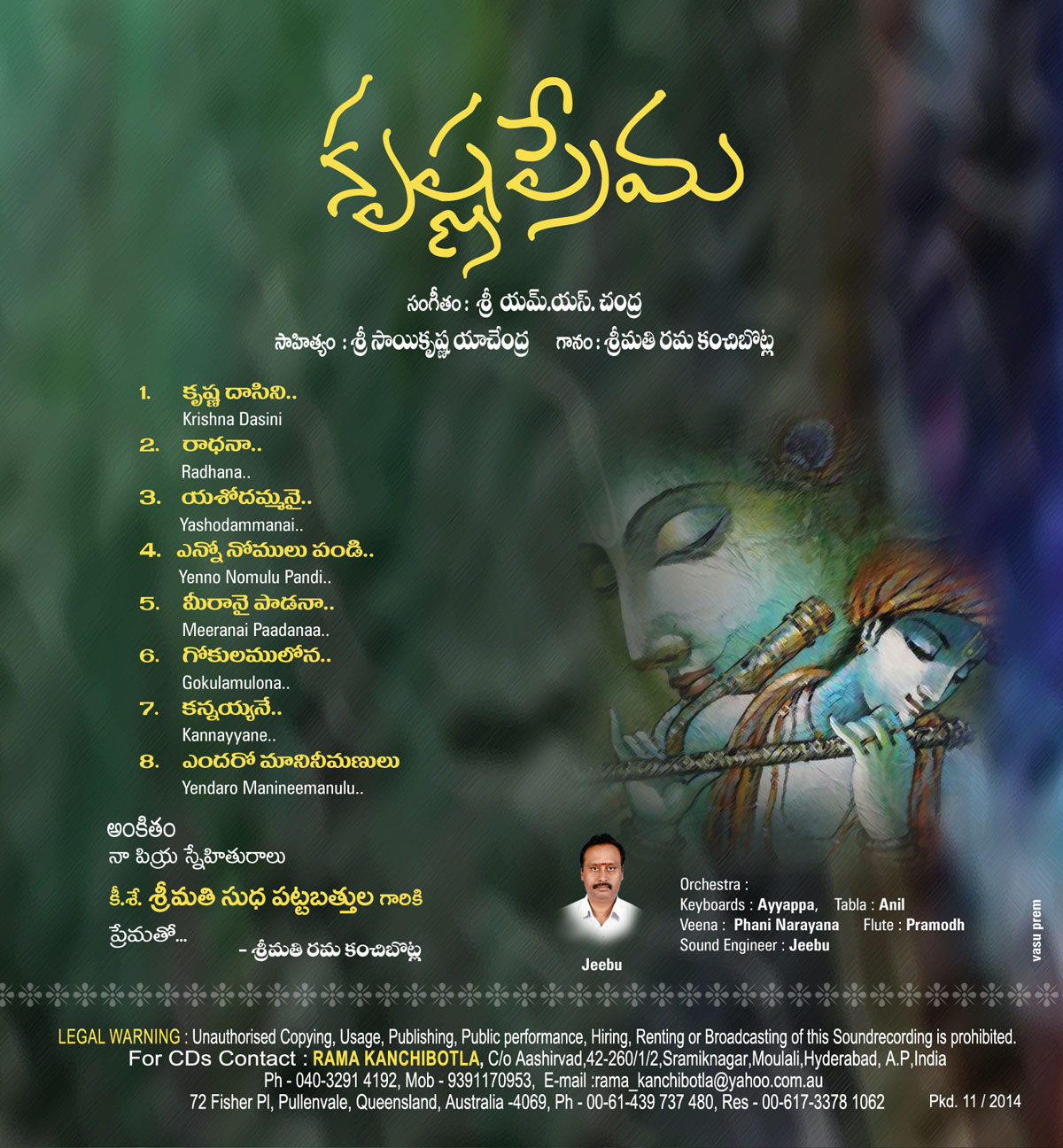 To purchase a CD, please contact Rama at rama_kanchibotla@yahoo.com.au